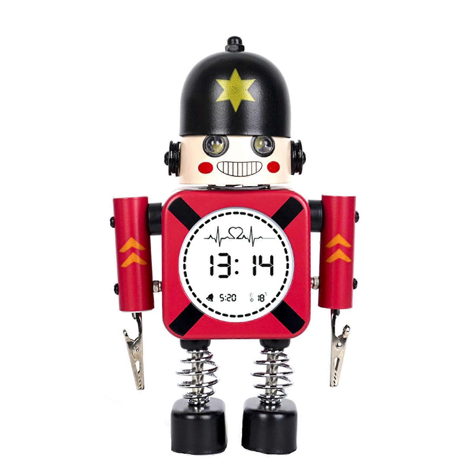 Cartoon Robot Alarm Clock Metal Wake-up Clocks with Flashing Eye Lights Desktop Ornament Children Christmas Gift