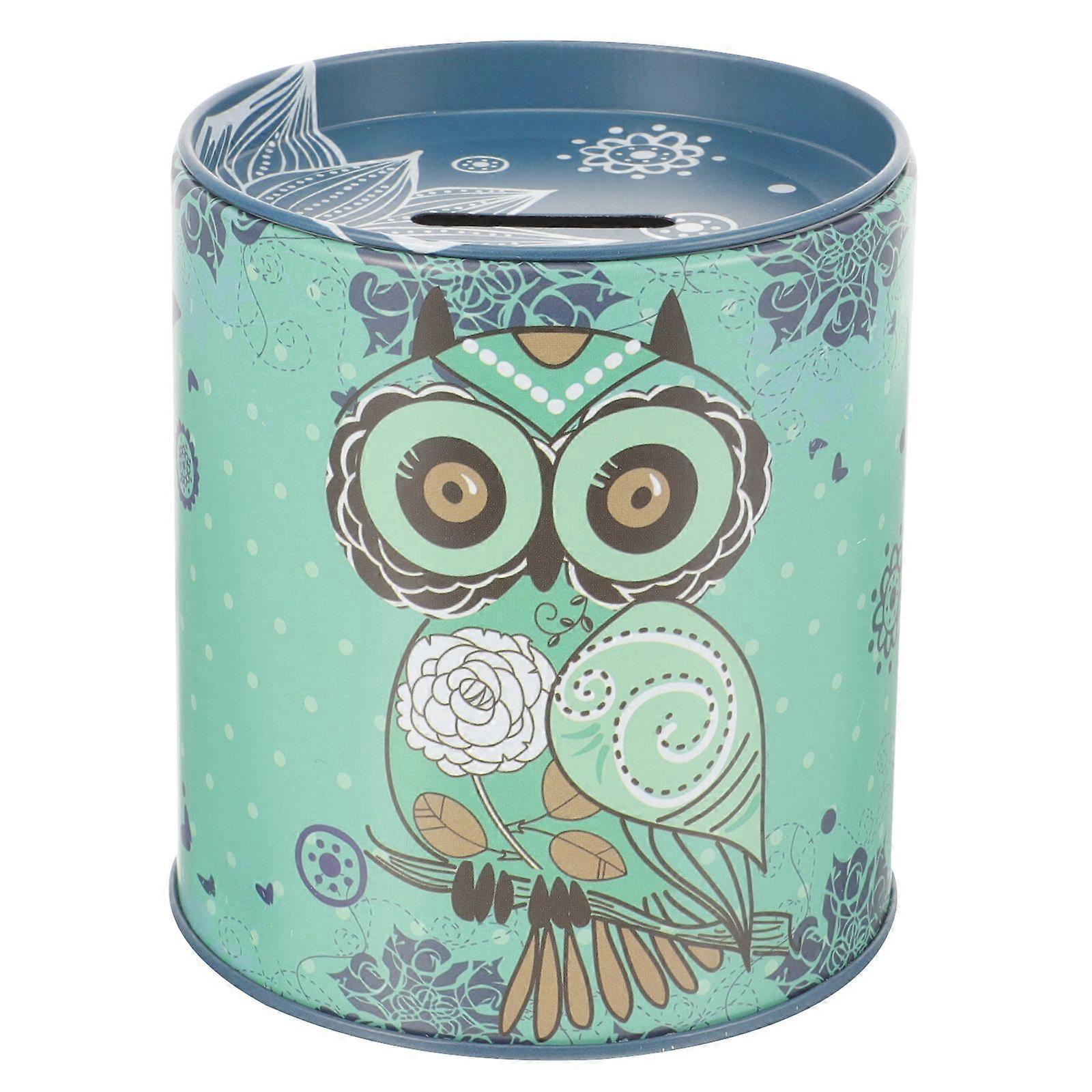 Cartoon Piggy Bank Owl Pattern Coin Container Kids Money Bank Tinplate Coin Jar
