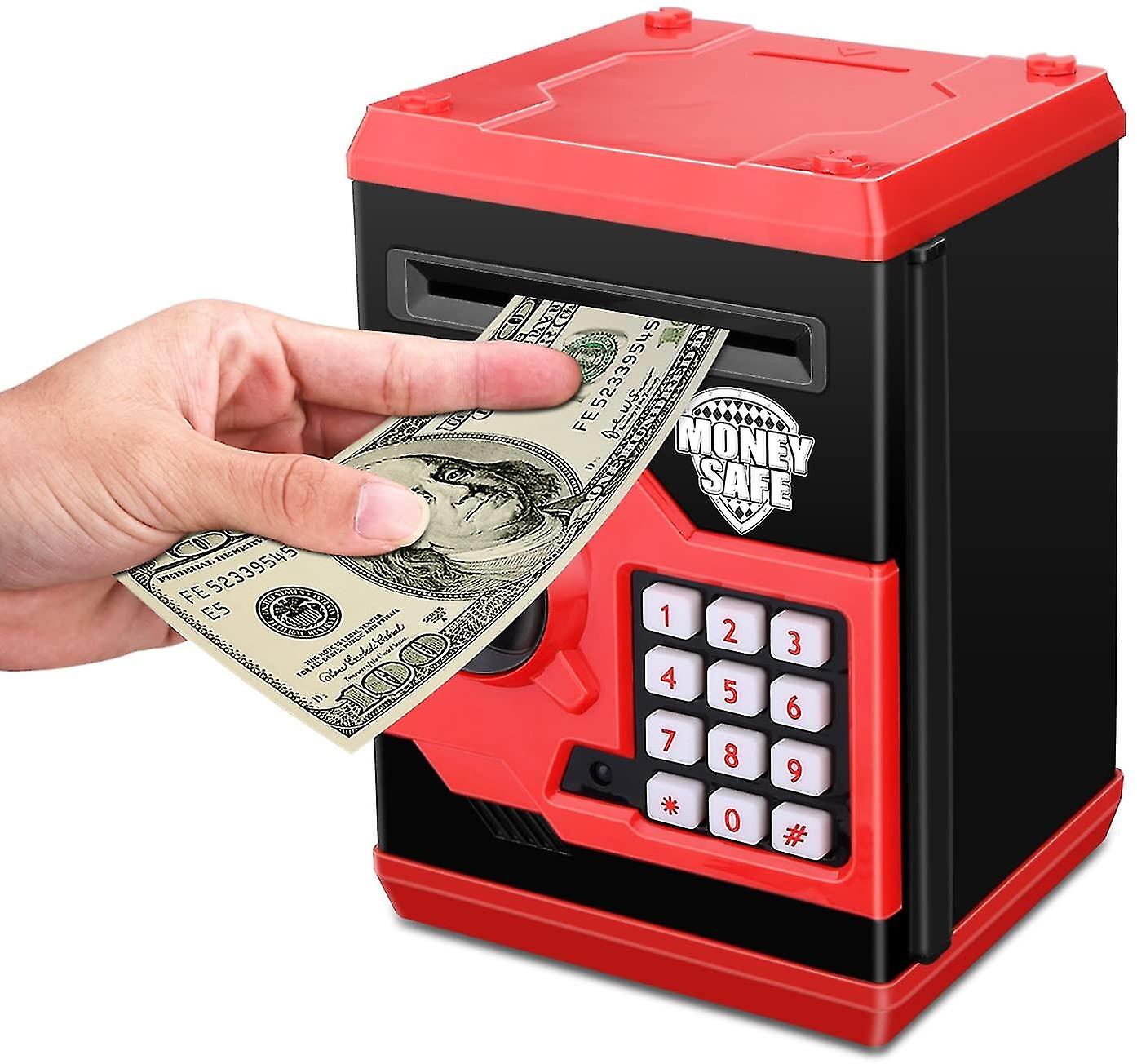 Cartoon Electronic Atm Password Piggy Bank Cash Coin Can Auto Scroll Paper Money Saving Box Gift For Kids (black Red)