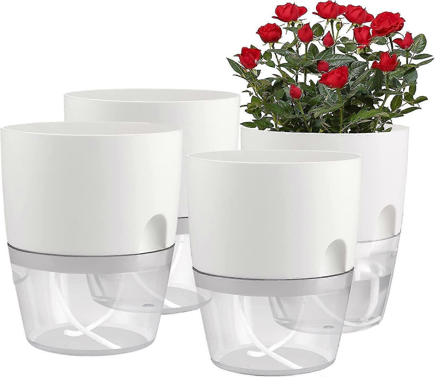 Set Of 4 Herb Pots With Irrigation System, Flower Pot With Self-watering Herb Garden For Fresh Kitchen Herbs, 18.2x 11x 15.3 Cm, White