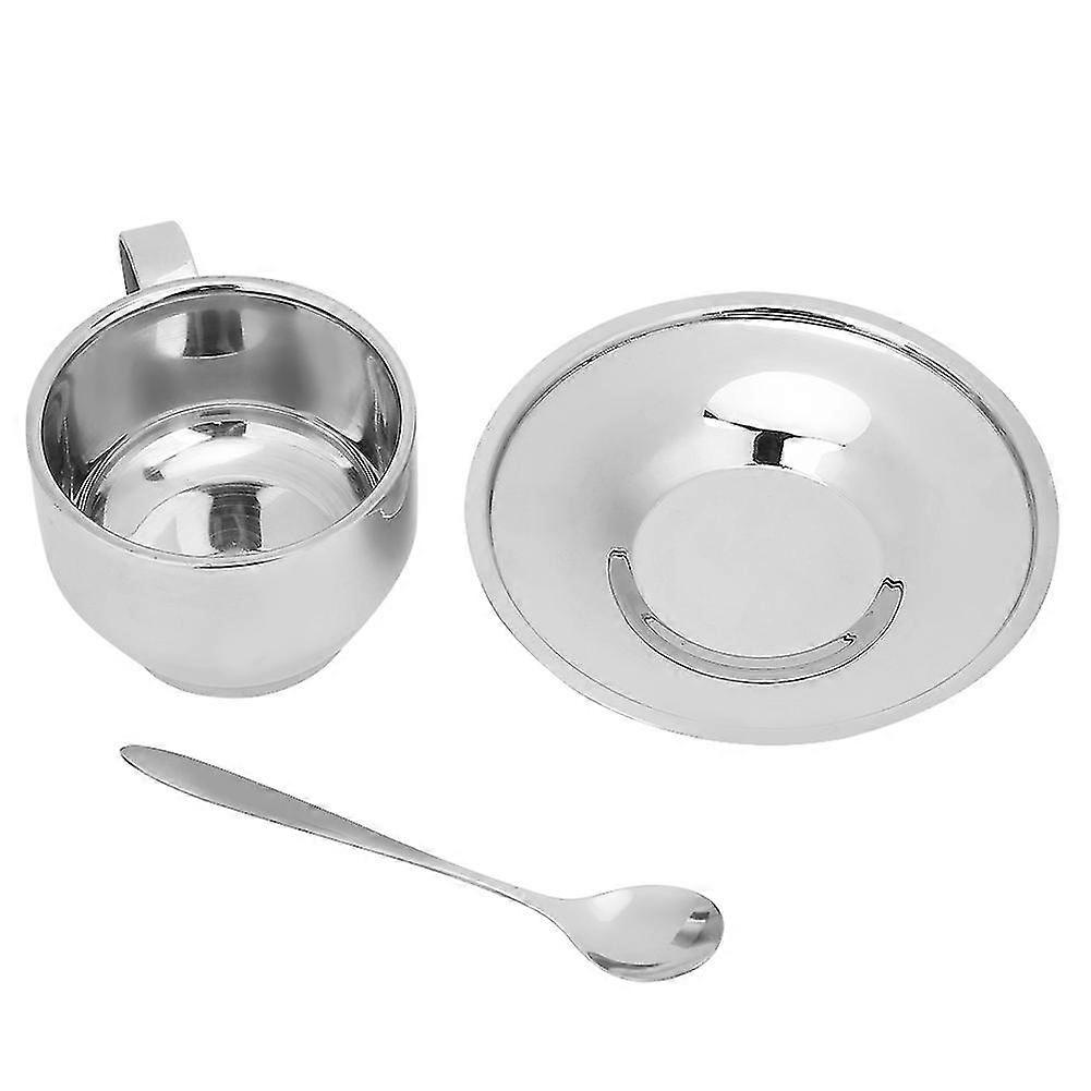 AntiScald Stainless Steel Coffee Cup Mugs Espresso Cups with Spoon Saucer Set Tableware--