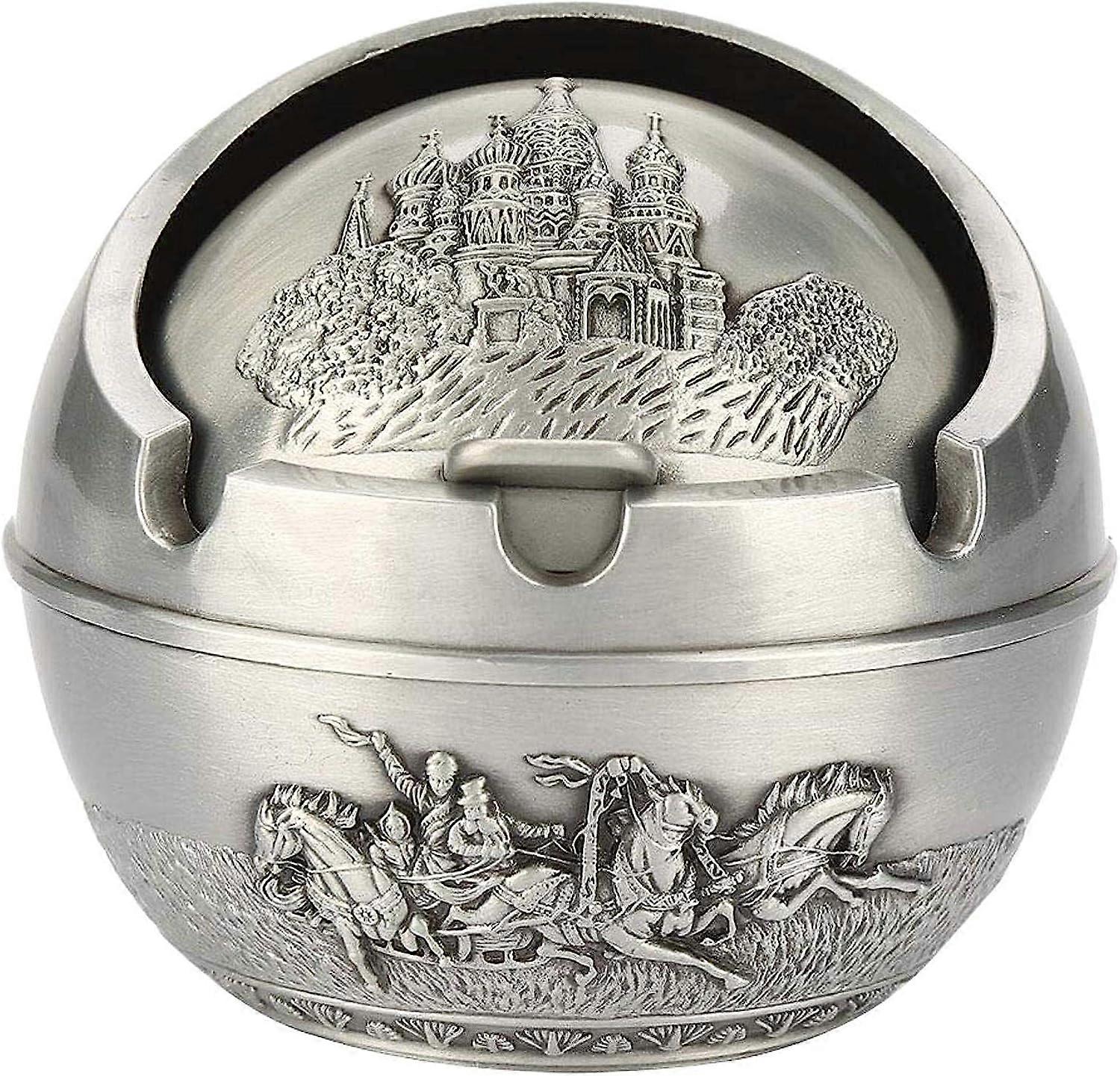 Ashtray Portable Travel Car Ashtray Stamping Pattern Gifts Home Decoration Retro Creative Zinc Alloy Ball With Lid Ashtray (tin 1pc)