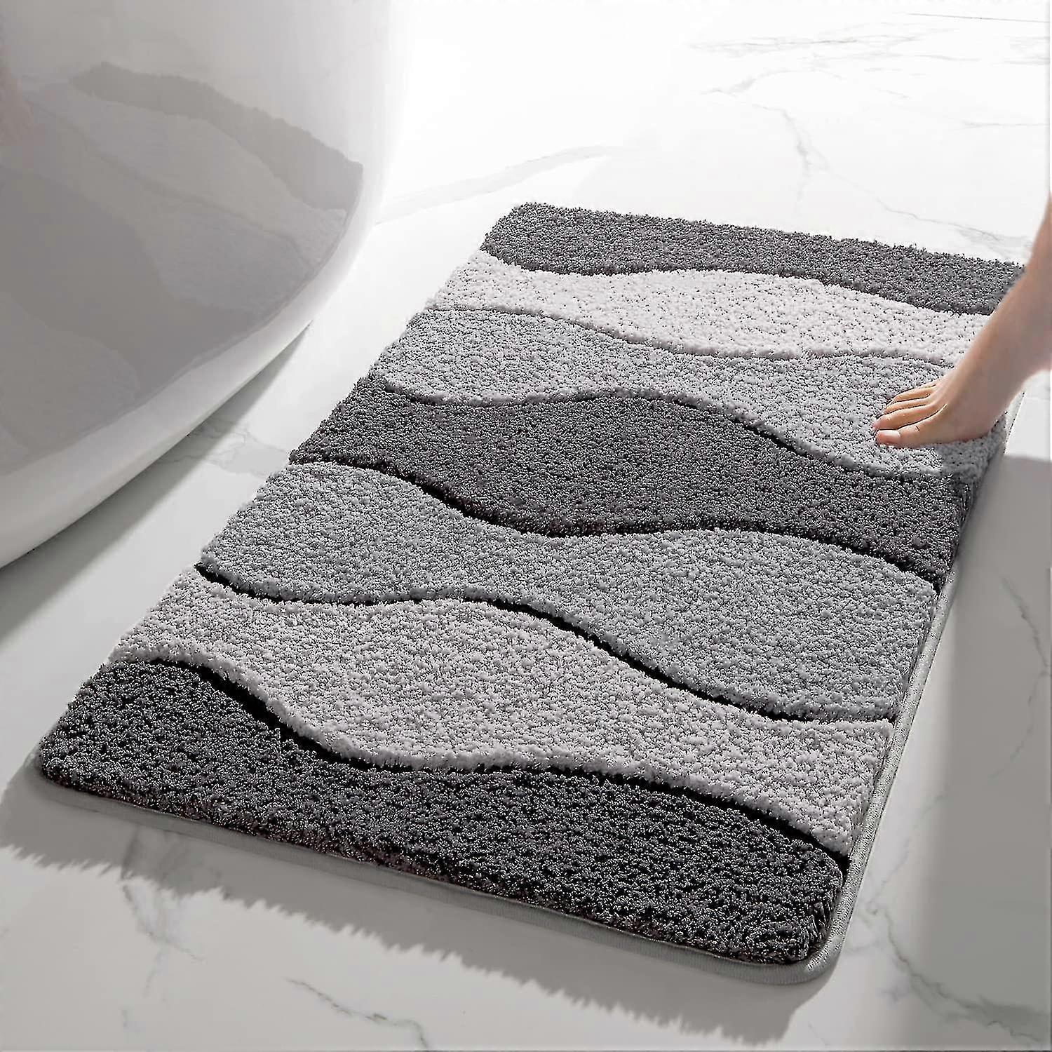 Gray Bathroom Rugs Non Slip Bathtub Mat Grey Wave Decor Microfiber Floor Carpet Super Absorbent Thick Plush Bath Rug Machine Washable Bath Mats For Tu