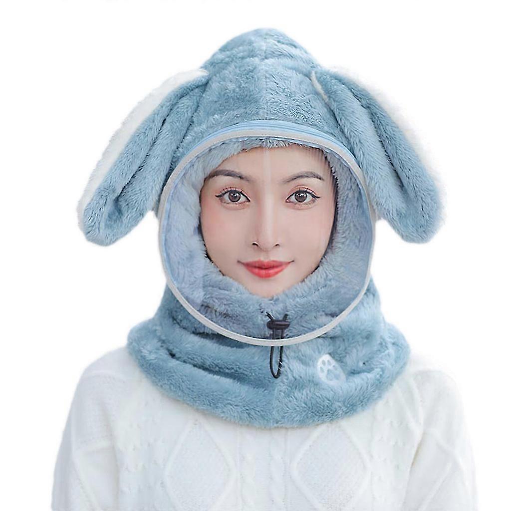 Solid Color Rabbit Ear Windproof Hat Anti-fog Face Shield Balaclava Beanie Hat Thermal for Skiing Snowboard Motorcycling Gray blue