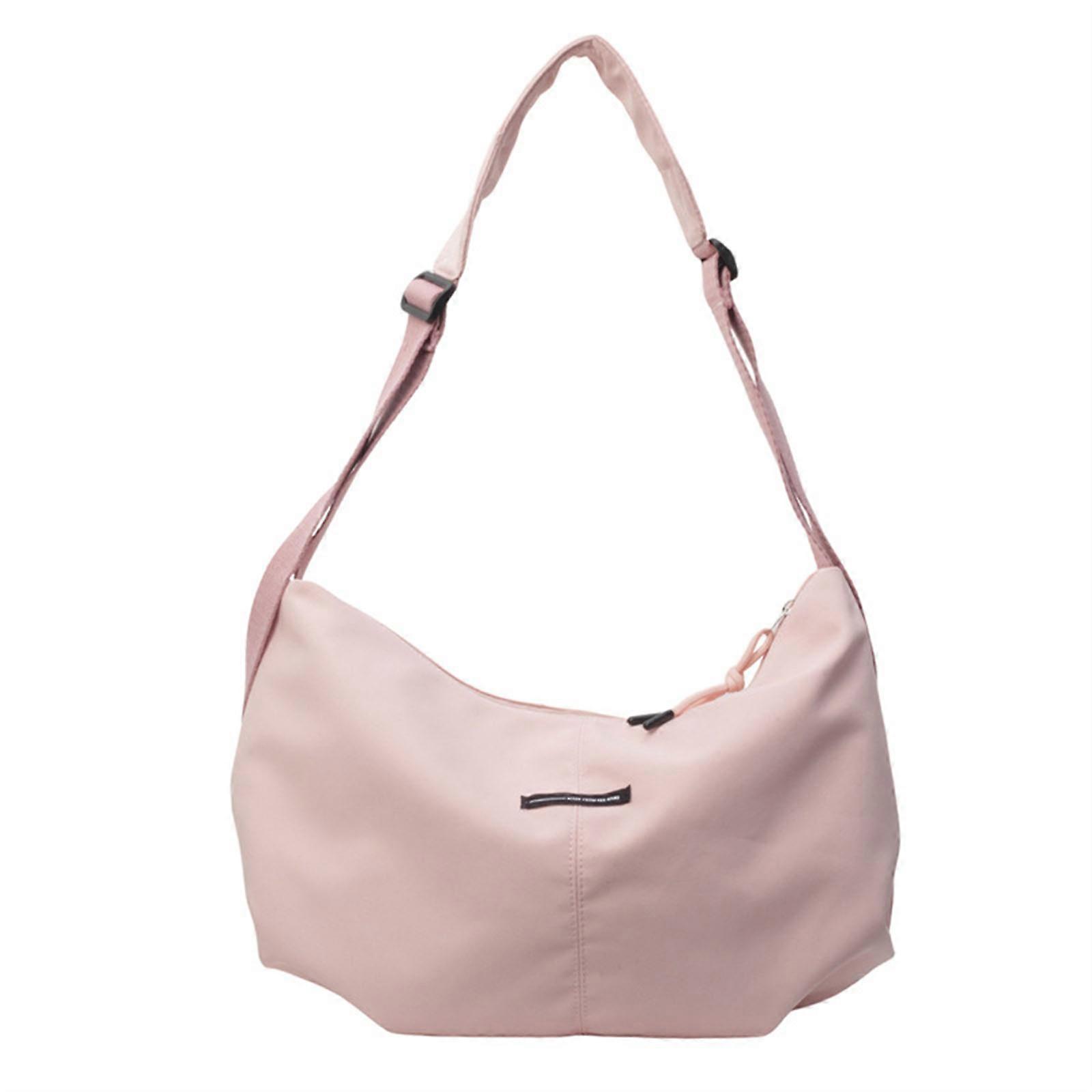Solid Color Canvas Large Capacity Crossbody Bag for Adults and Teens Shoulder Bag with Zippered and Adjustable Strap Pink