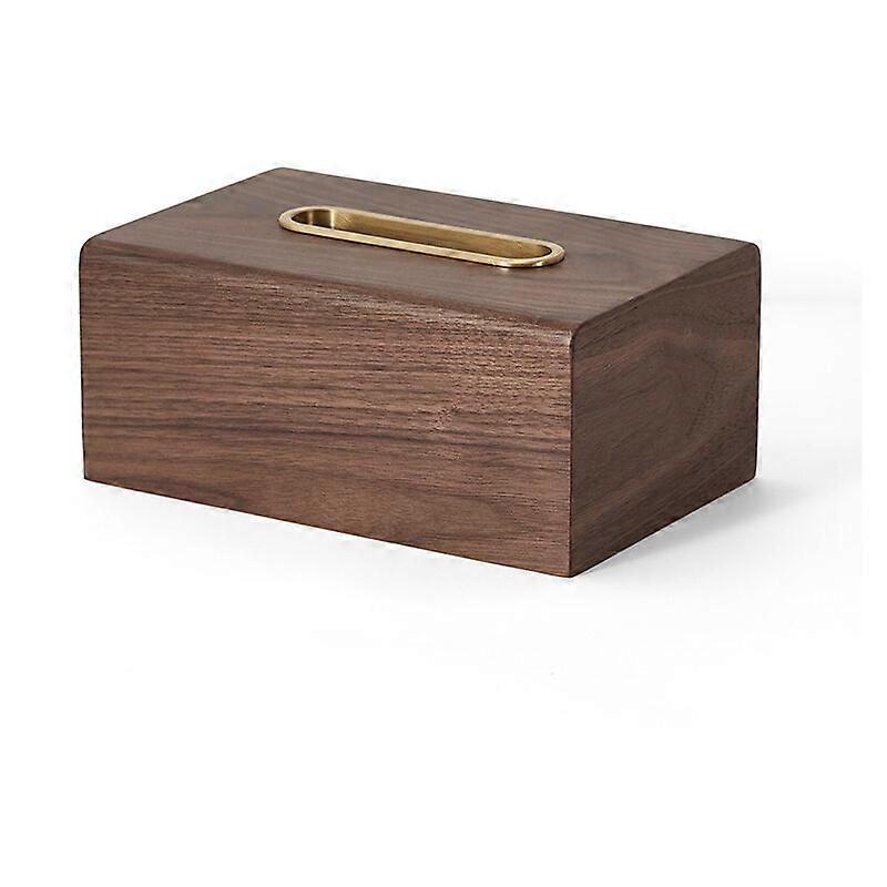 Solid Wood and Brass Tissue Box Living Room Lightweight Napkin Box Office Practical Paper Bin Home Car Tissue Box - Small 19.5 x 12.8 x 8.5cm