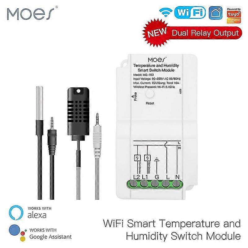 Wifi Smart Temperature Humidity Switch Module Sensor Dual Relay Output Smart Life App Wireless Controller Work With Alexa Google