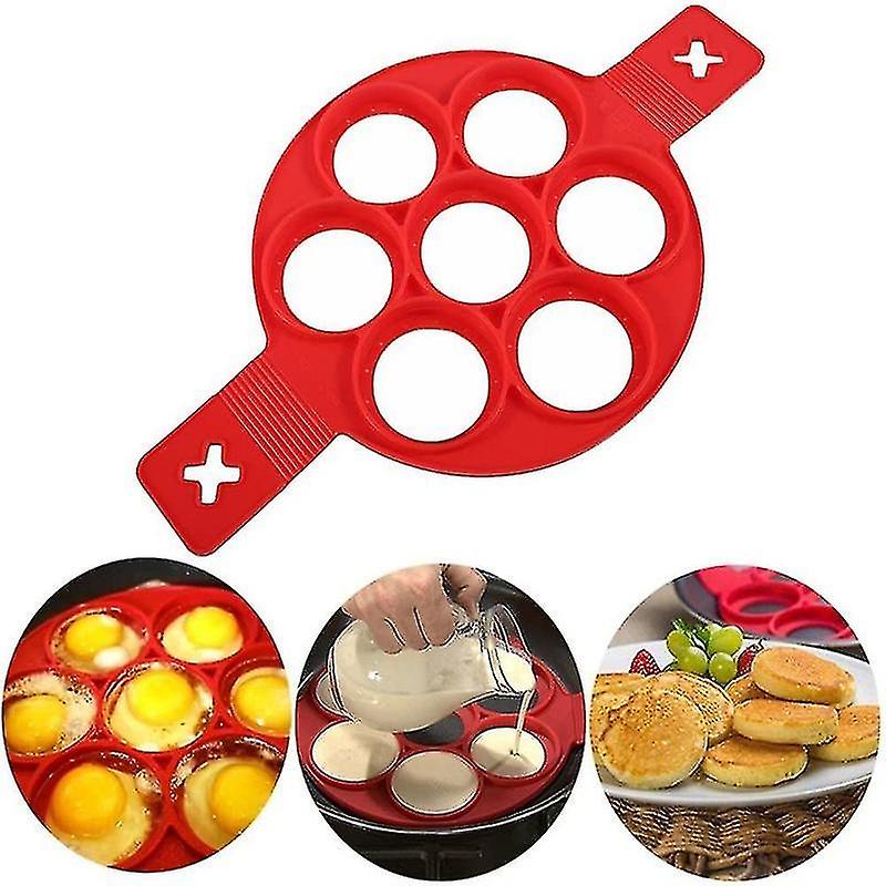 Nonstick Flip Cooker Pancakes Mold Silicone 7 Circles Reusable Pancake Maker Egg Ring Kitchen Cookin