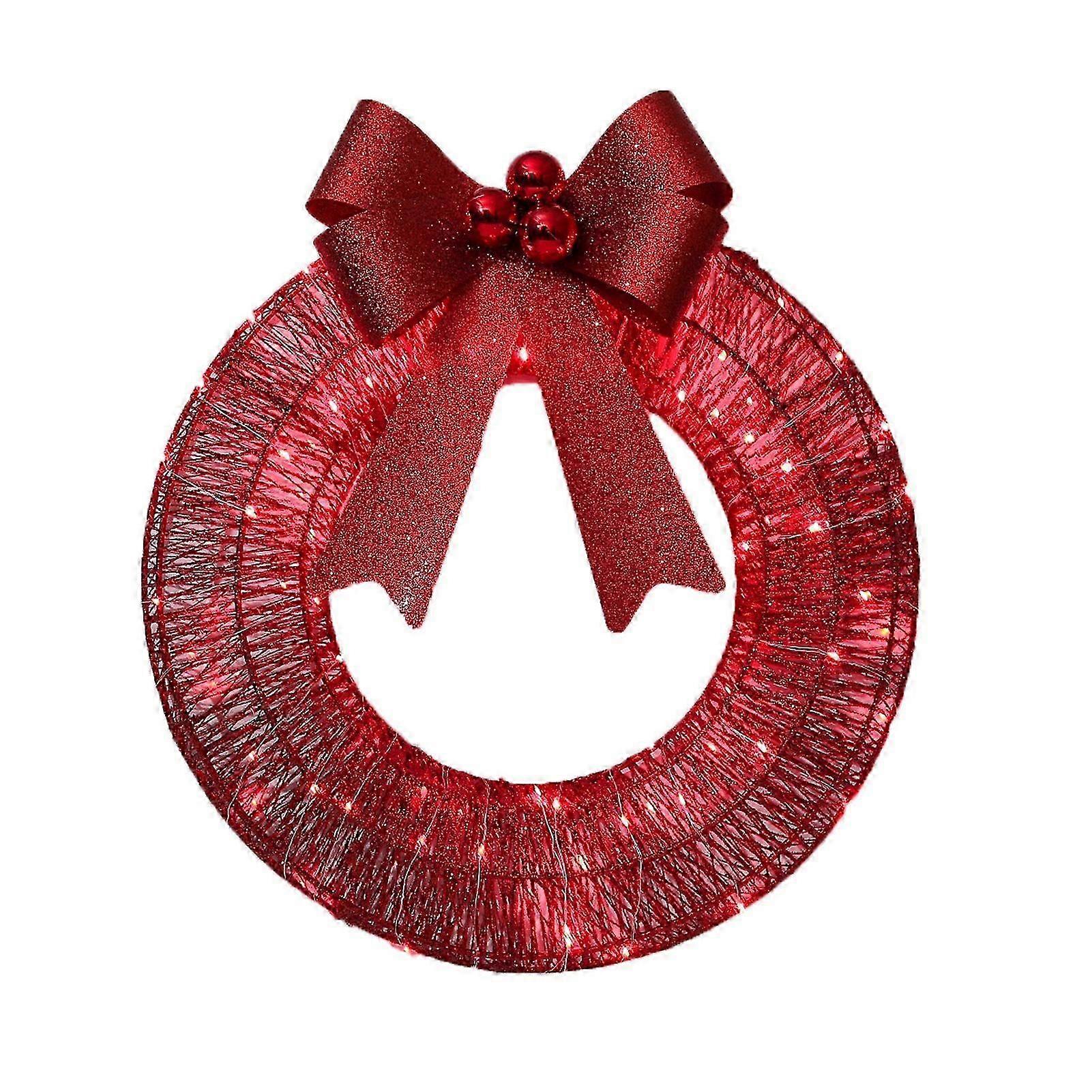 Lighted Christmas Wreath Decoration Large Christmas Wreath with Red Bow for Front Door Entryway Window Porch Holiday Decor