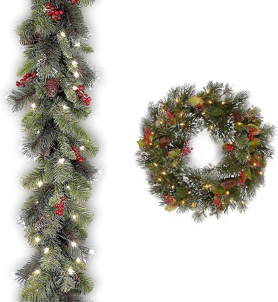 Pre-Lit Artificial Christmas Garland, Green, Crestwood Spruce, White Lights, Decorated with Pine