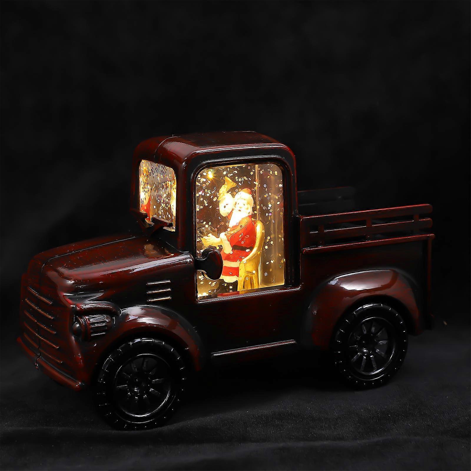 Lighted Decor Santa Claus Ornament Dark Red Christmas Decoration 15.50X10.00X7.50CM Tractor Shape 1Pc