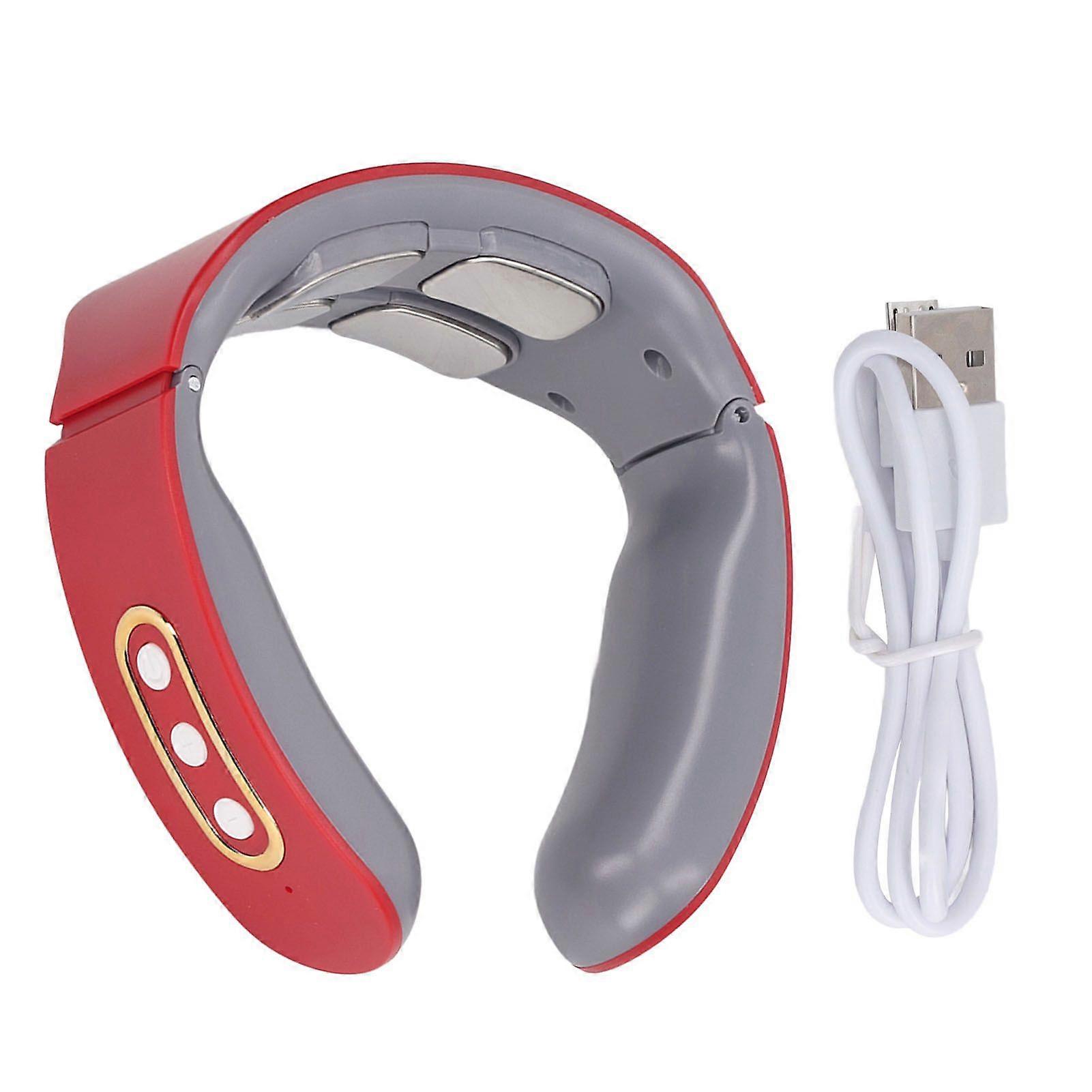 Electric Pulse Neck Massager with Heat 6 Modes 9 Levels 4 Pads Cordless Cervical Spine Massager RedYMMR)
