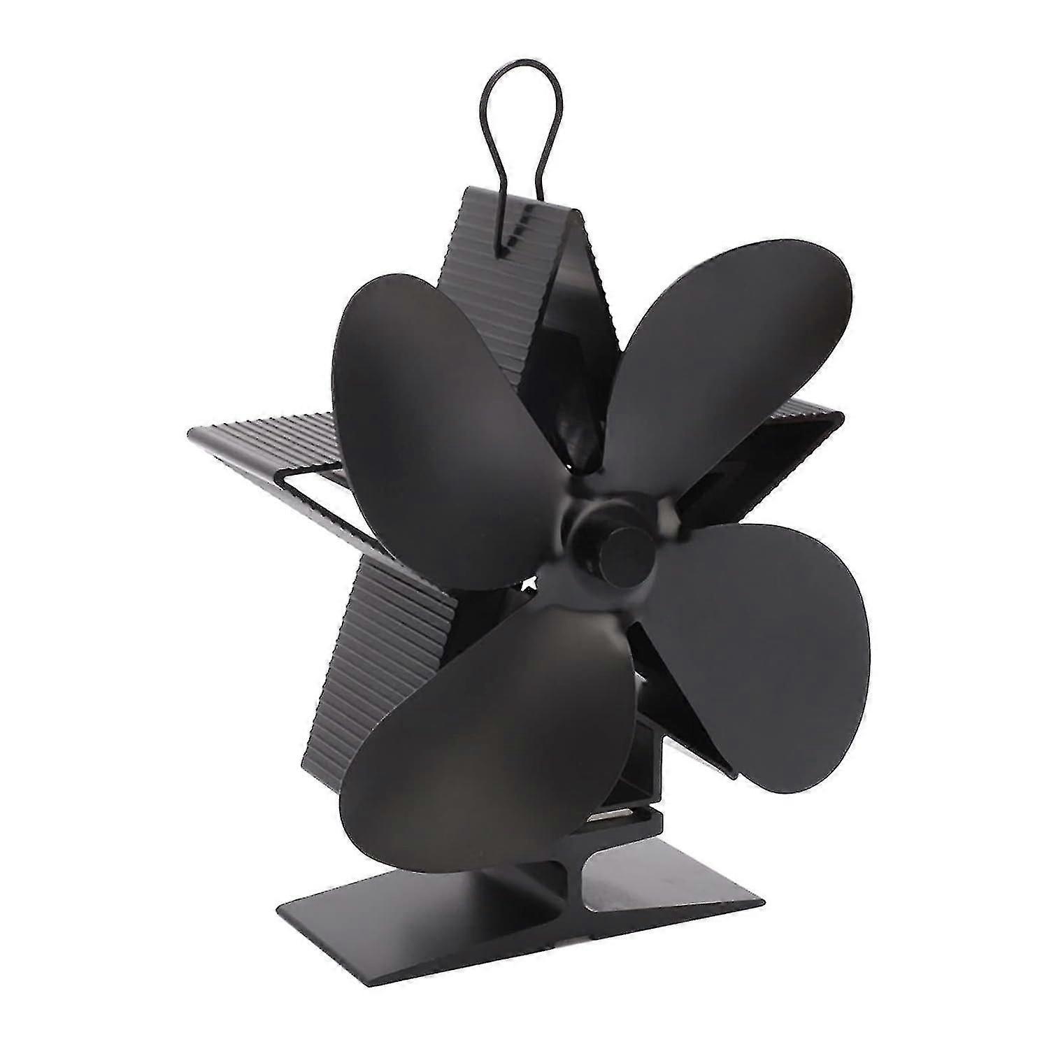 Heat Powered Stove Fan, 4 Blade Auto Start Black Aluminum Alloy Thermodynamic Wood Burning Fireplace Fan - q36