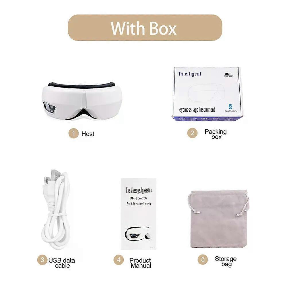 Principle of action: There are many acupuncture points around the eyes of the person recorded in the medical book. When the eyes are frequently rubbed /blinking /sightedness /sightedness is dizzy, the eye is too tired, and the skin can be massaged around the eyes and the temples properly. Achieve the effect of dredging and relax your eyes. The eye massager is to simulate the "push-squeeze-pinch-push" massage around the eyes and the temples, and add the hot compress of the eyes to relax the eyes and cooperate with the Bluetooth music to get rid of the fatigue of day.