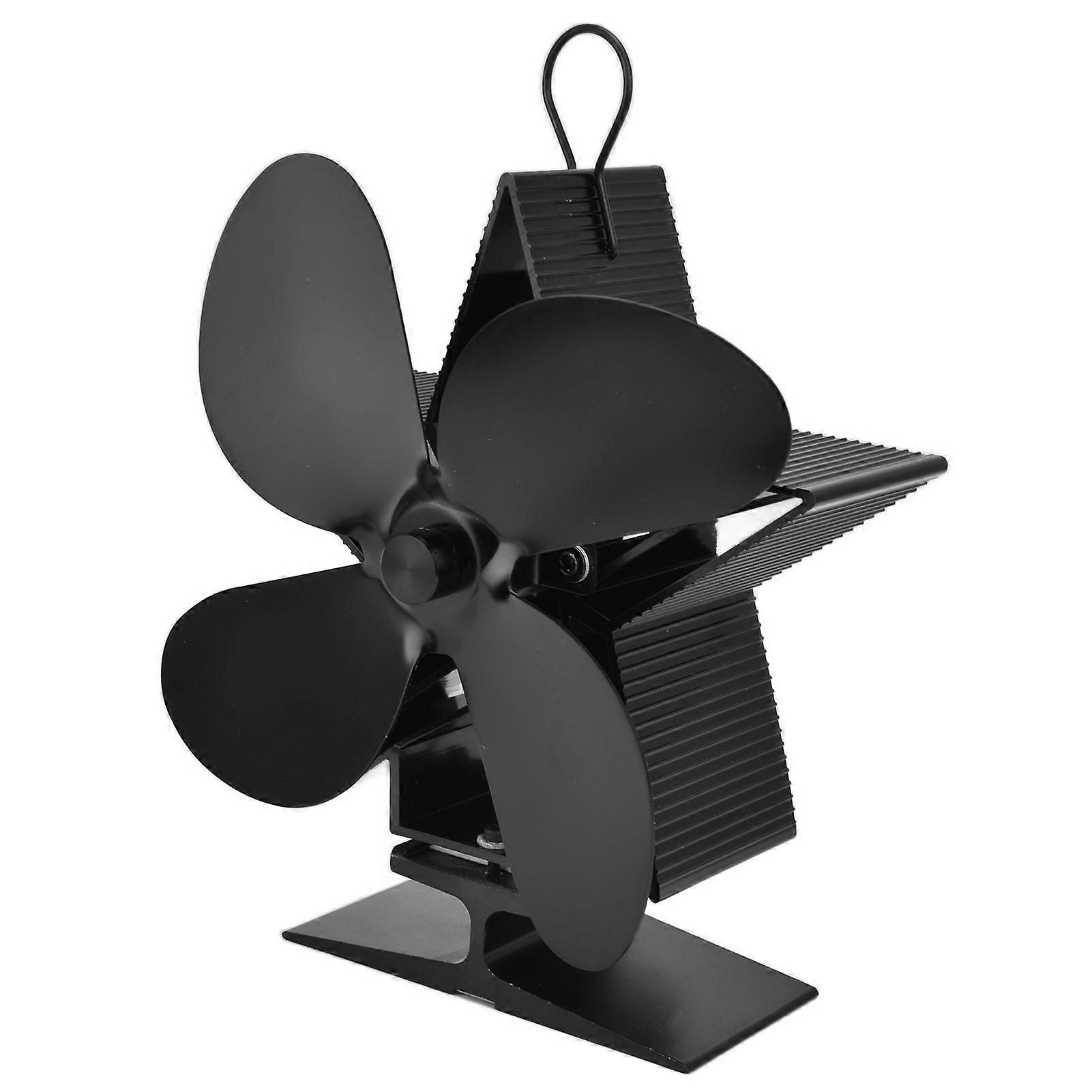 4 Blade Fireplace Fan with Thermoelectric Module Zinc Alloy Heat Powered Stove Fan Silent Operation Black