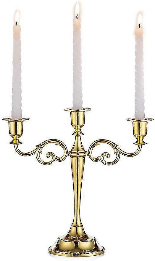 Candelabra, 3 - Arm, Elegant Gold - toned Design with Ornate Scrolls, Ideal for Home Decor and Special Occasions