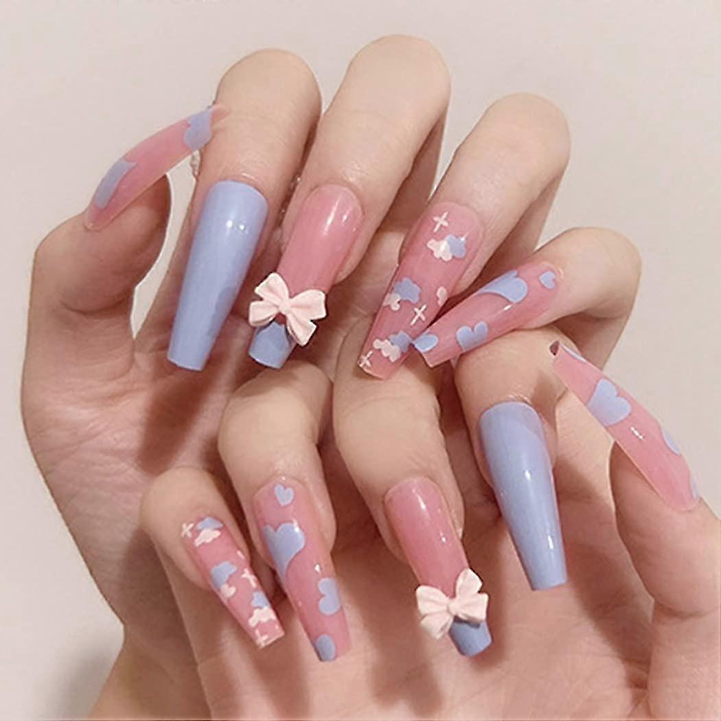 Cute Heart Press On Nails Glossy Long Coffin Fake Nails Designed Coloful Pink Bow French Ballerina Nails Tips Wedding Party Valentine's Day Full Cover