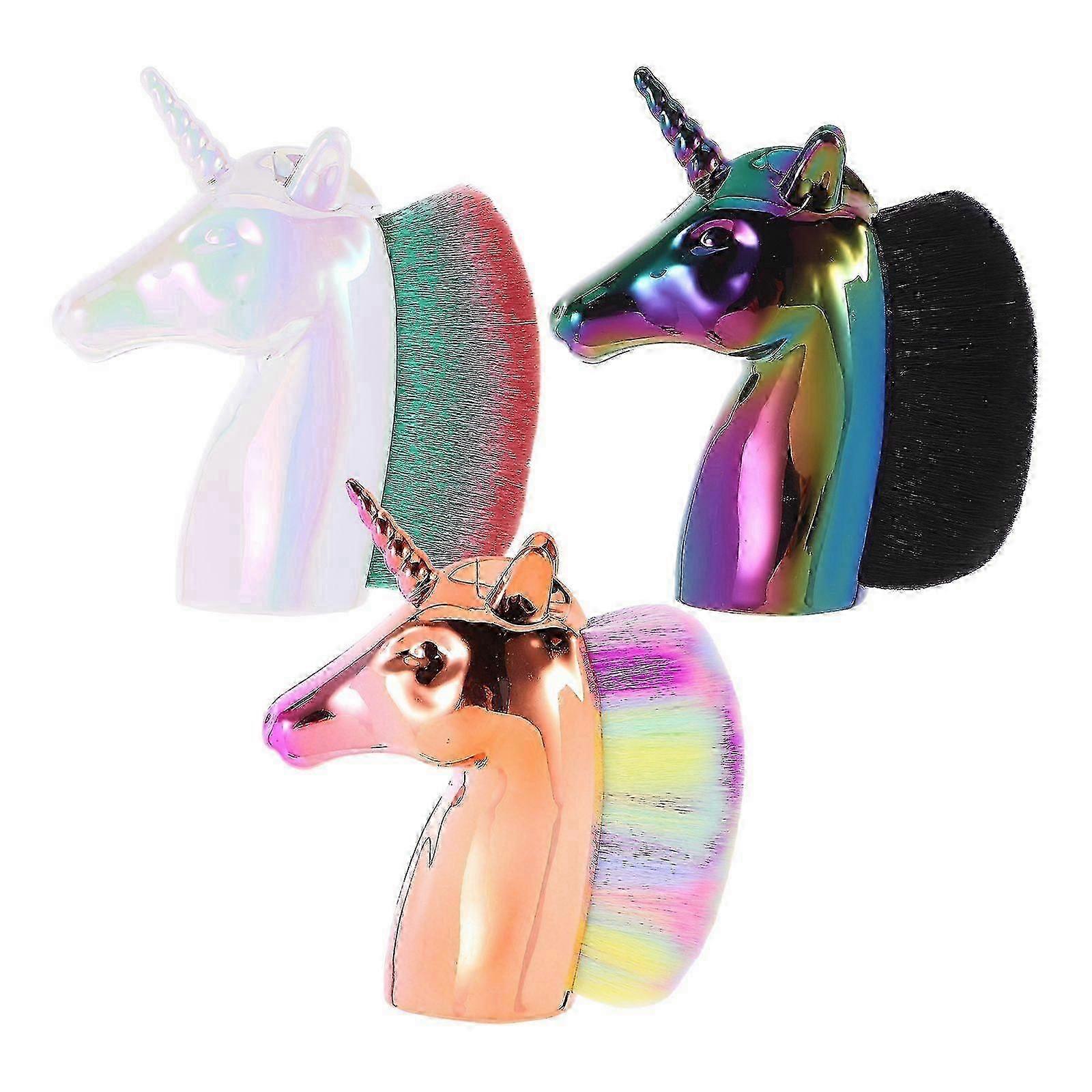 Set of 3 Unicorn Handle Nail Art Brushes for Cleaning Nail Dust (White, Black, and Champagne Multicolor)c