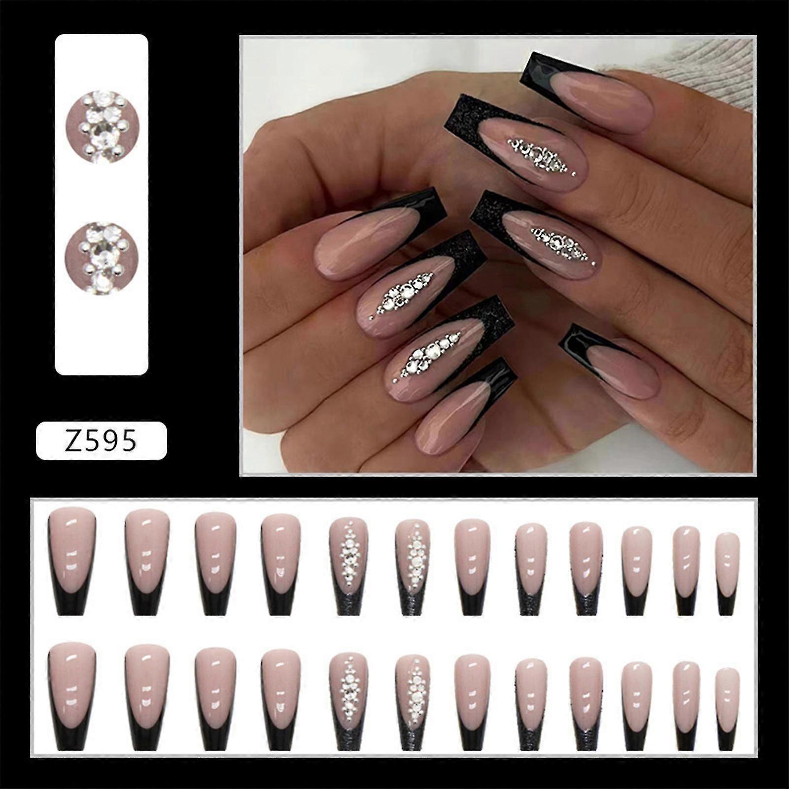Black French Cool Press On Nails Full Cover Natural Long Square Nails Jelly Glue Model