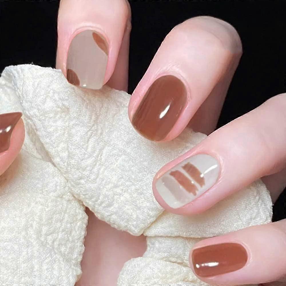 Short Square Press On Nails Acrylic Brown False Nails Cute Glossy Fake Nails Compatible With Women And Girls 24pcs