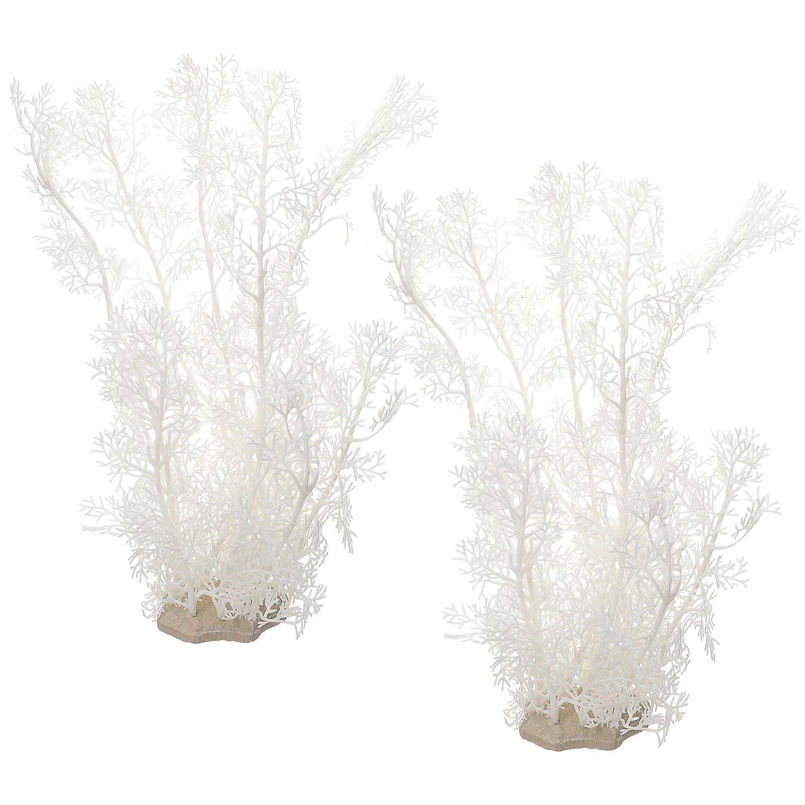 White Aquarium Plant Plastic Fish Tank Artificial Plant For Reptile Environment 37x8cm Decoration 2Pcs