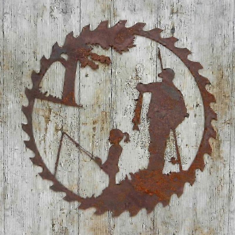 Father's Day Iron Wreath Round Hollow Fishing Silhouettes Hanging Ornament Home Wall Decor