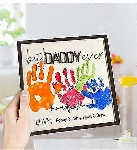 Father's Day DIY Handprint Wooden Plaque with Kid's Name,Handprint Plaque for Daddy/Dad/Grandpa/Papa(No Pigment)