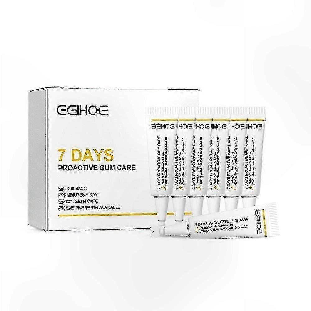 Name: EELHOE Gingival Care Essence Weight: 45g Specifications: 7 pcs Size: 24.8 x 2 x 10 cm Applicable People: General Product Ingredients: water, potassium glycyrrhetinic acid, aloe vera extract, xylitol, arginine, hyaluronic acid Features: 1. Helps relieve gum recession with a mild and effective formula, reducing swelling and discomfort. 2. Removes tooth stains. Clinically proven gel helps clean teeth stains and enhance brightness for whiter teeth. 3. Helps relieve gum swelling and discomfort with a gentle dental hygiene gel. 4. Supports teeth whitening by removing surface stains and enhancing overall tooth brightness. 5. A proven dental care solution, this clinically tested gel helps relieve symptoms of gum recession, gum swelling, and tooth discomfort while supporting oral health. Package Included: 7 x Care Gel