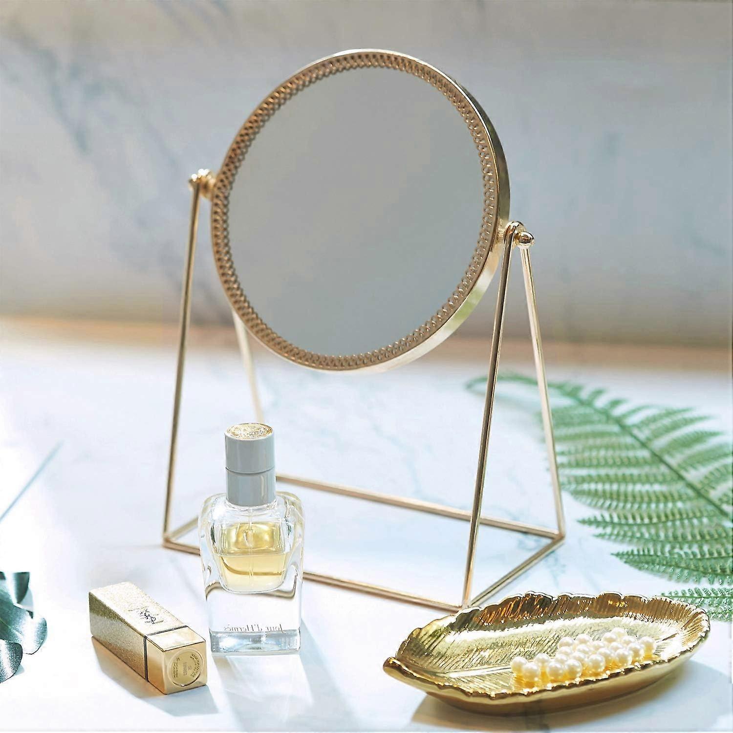Single Sided Makeup Mirror Metal Table Mirror Vintage Mirror 360 Degree Rotation Round Mirror Rotati