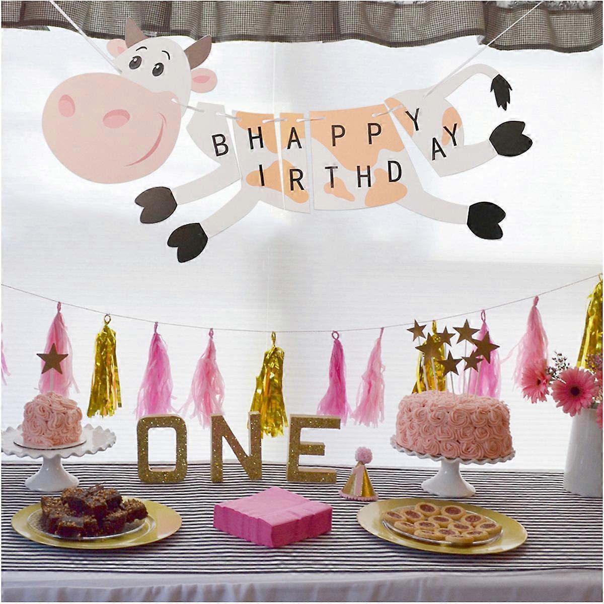 Cow Pattern Birthday Decoration Banner For Children's Birthday Party Cartoon Animal Theme 1Pcs