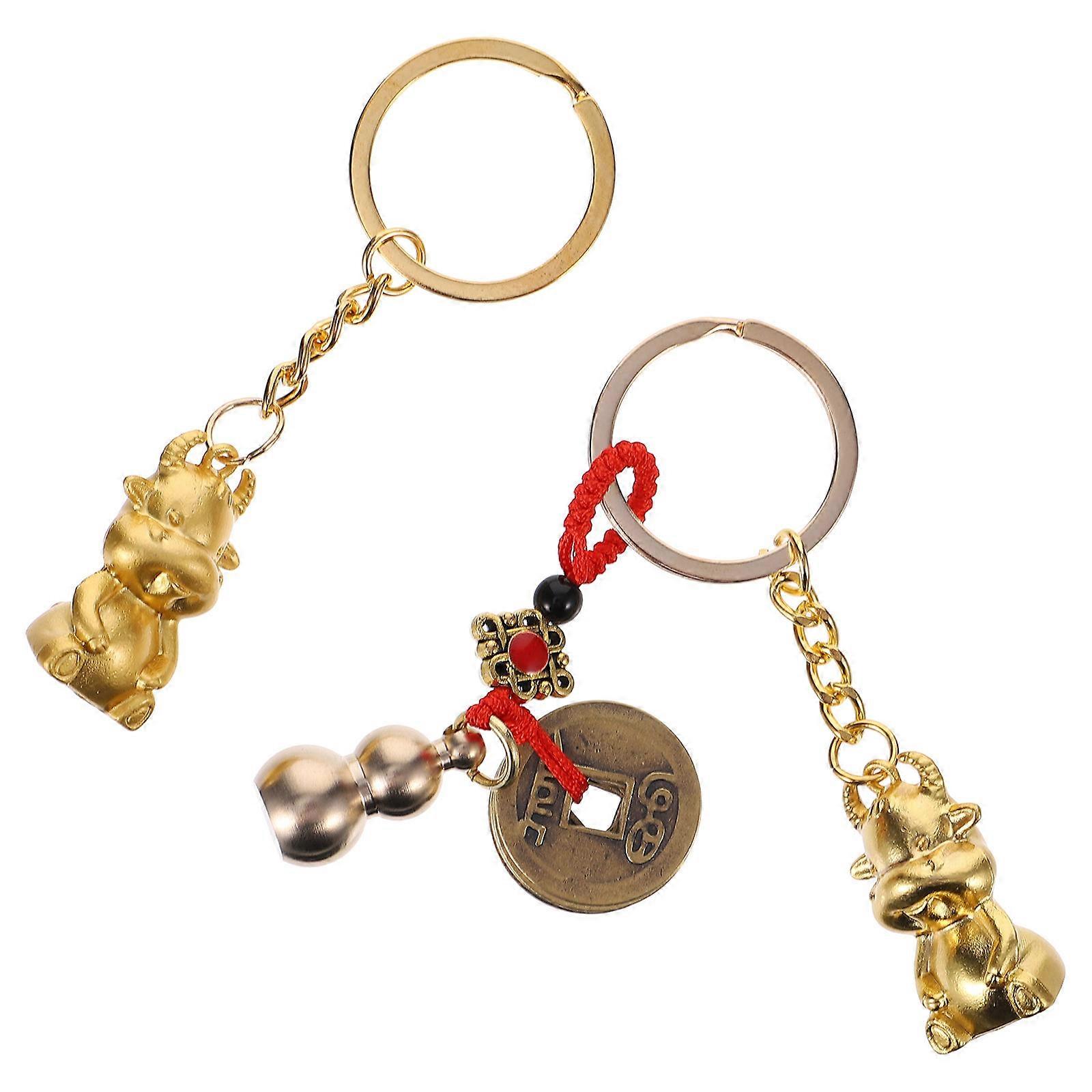 Year of Ox Keychain Pendant Five Emperor Pendant Chinese Wu Lou Keychain Portable Zinc Alloy 2Pcs