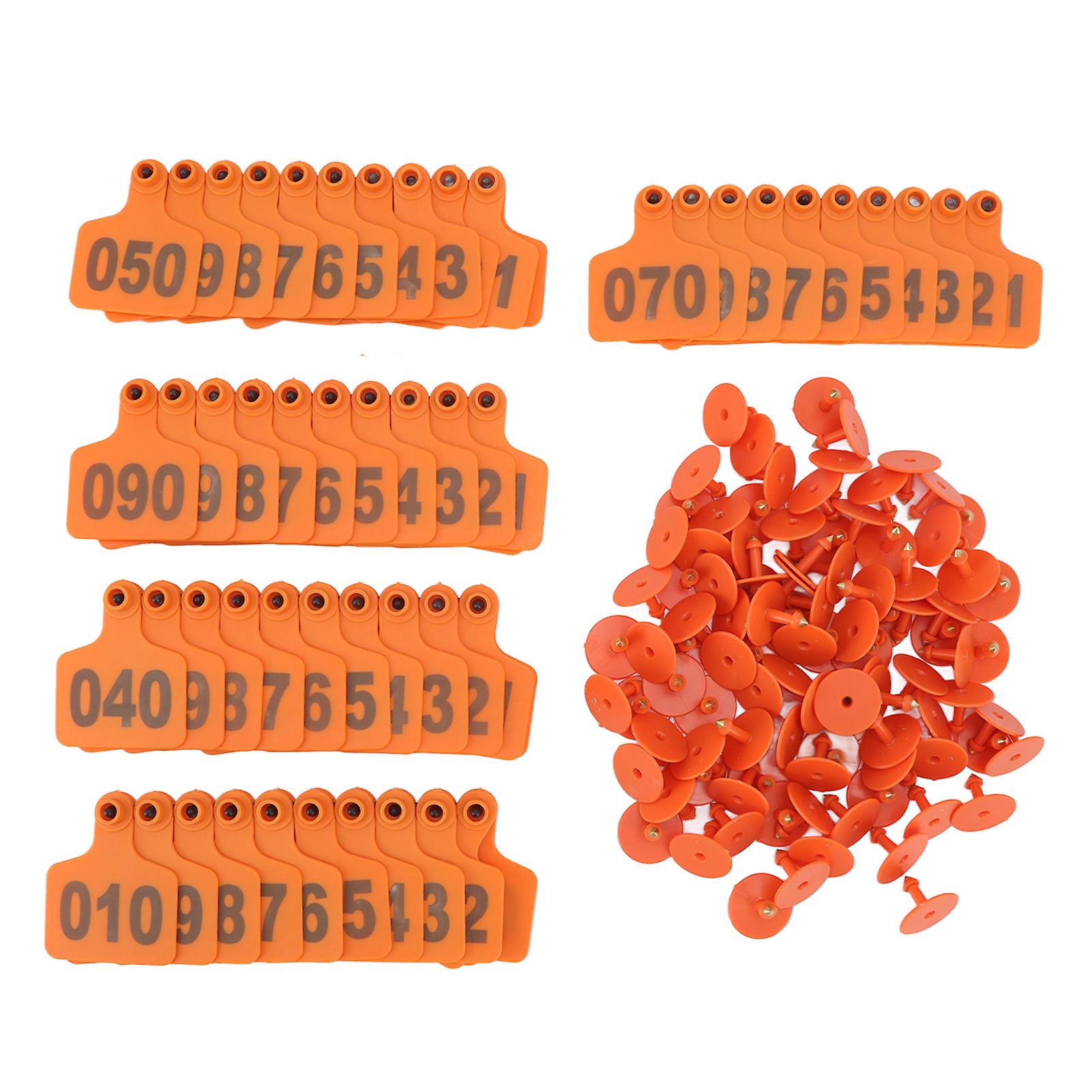 100pcs Cattle Ear Tags Clear Laser Printing TPU Identification Numbered Livestock Ear Tags Orange
