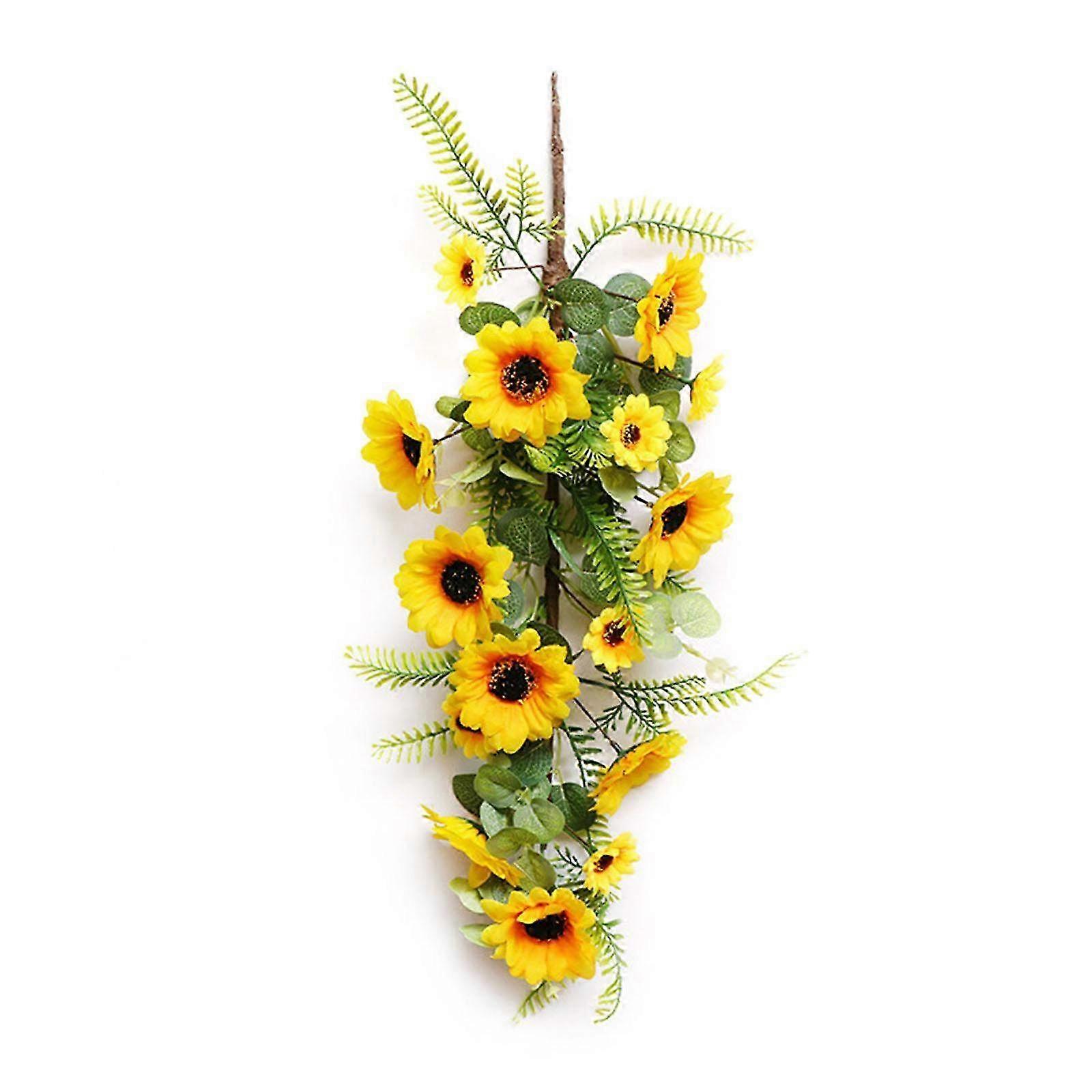Pastoral Style Artificial Sunflower Rattan Wall Hanging - 55cm Home Decor for Charming Wall Display and Rustic Aesthetic