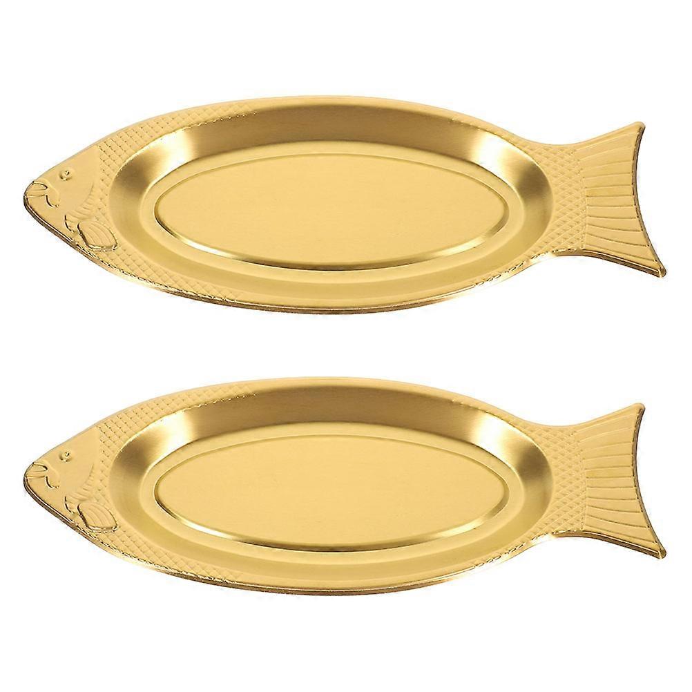 Stainless Steel Trays for Special Occasions Fish Shaped 35.00X14.00X1.50CM Golden Serving Plate 2Pcs