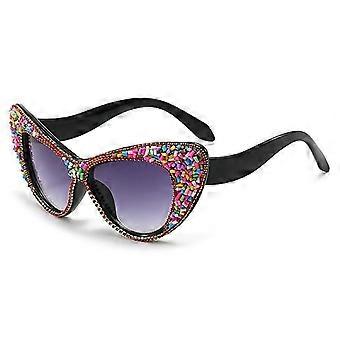 Oversized Cat Eye Sunglasses Adult Rhinestone Luxury Brand Designer Diamond Sunglasses Adult Punk UV400 Shades Glasses Vintage(C1)