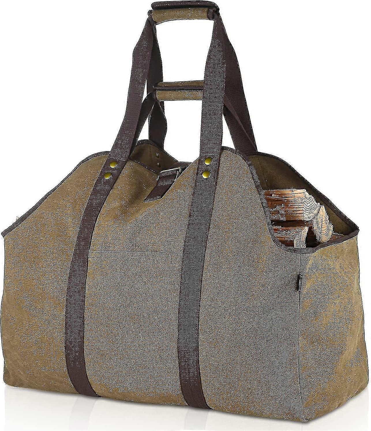Usage Tips: Extra large firewood carrier Log basket Firewood bag Canvas carry bag with 2 handles With a waterproof cover, the log carrier can carry wet logs or other items on rainy or snowy days. The unique design gives you alternative carrying options to cross the body or carry by the handles, allowing you to carry as much wood as possible. The long shoulder strap and top handles are fitted with the weight-reducing cotton pads to make carrying easier more powerful and reduce stress. Size: 60 x 30 x 50 cm. You can transport almost 15 kg of firewood with this log carrier. Large enough to store logs for indoor use or to transport logs for camping purposes."