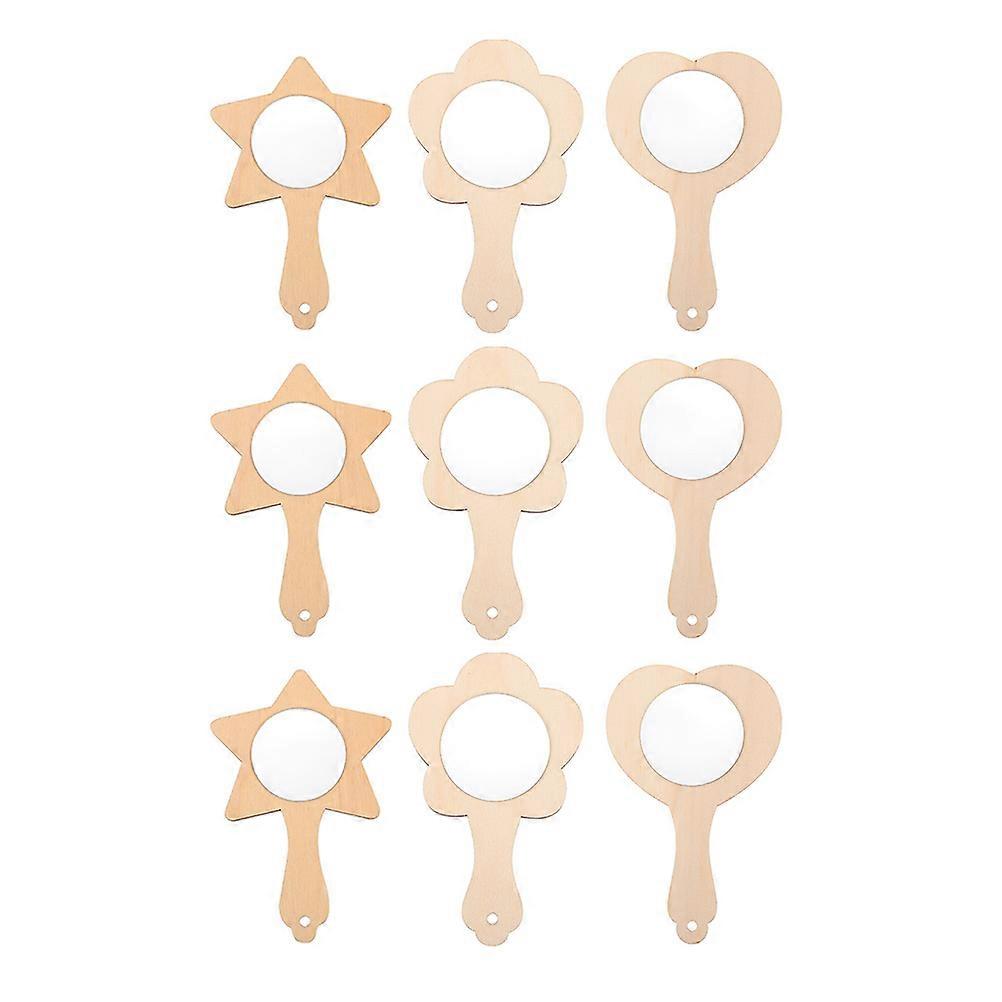 Special-Shaped Mirror Children Hand Painting Mirror Five-Petal Flower Style 9Pcs Light Brown