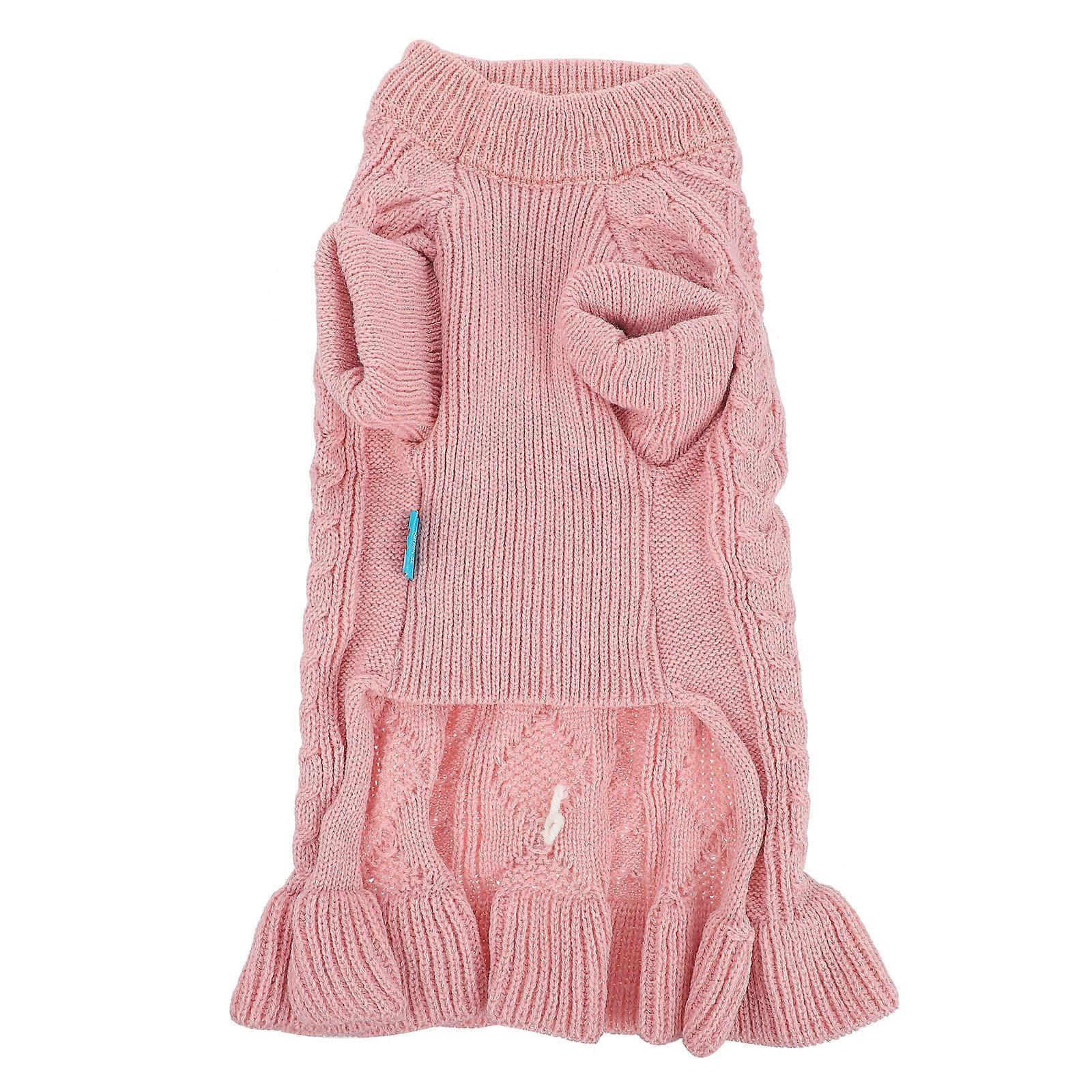 Pink Acrylic Pet Sweater Skirt for Dogs and Cats Winter Knitted Clothes Perfect for Parties and Events