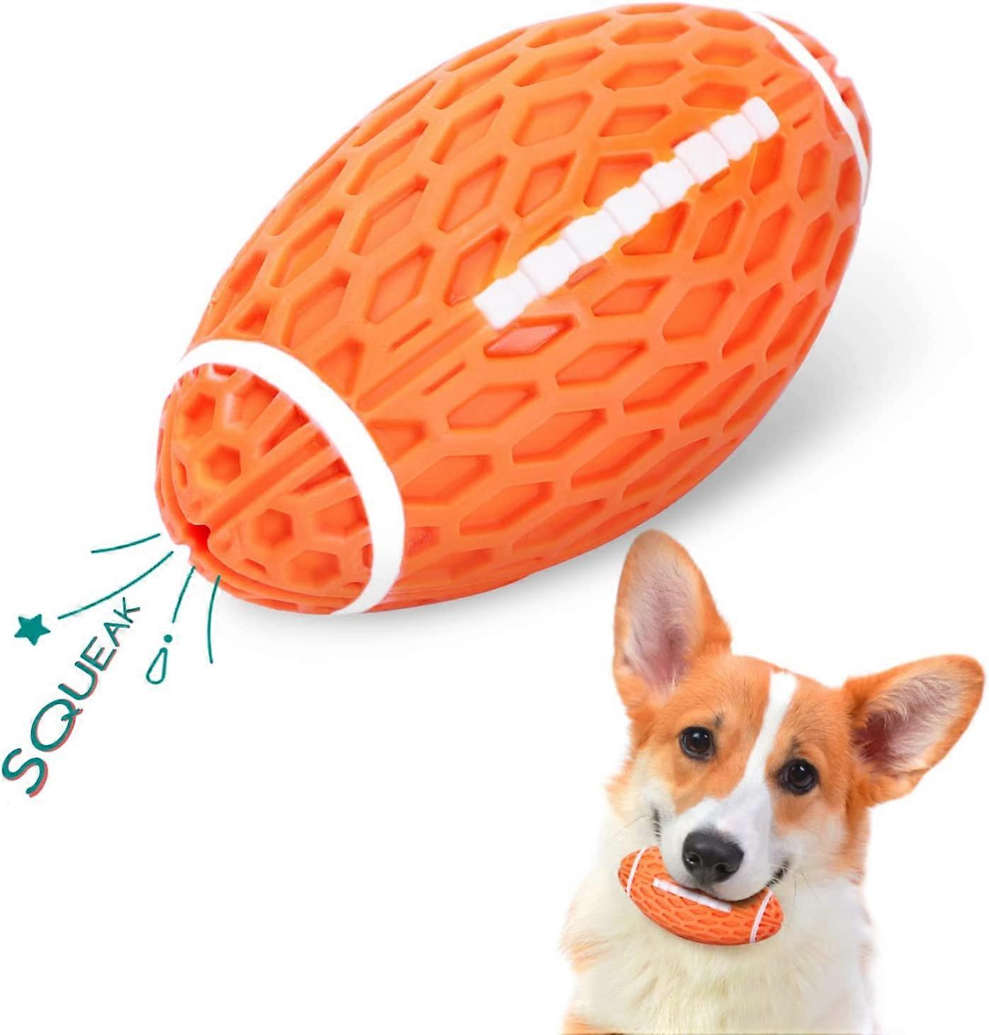 Dog Toy Ball, Squeaky Dog Ball, Indestructible Natural Rubber Rugby Dog Ball, Dog Chew Ball, Dog Toy with Dental Grooming L10.3*W5.6