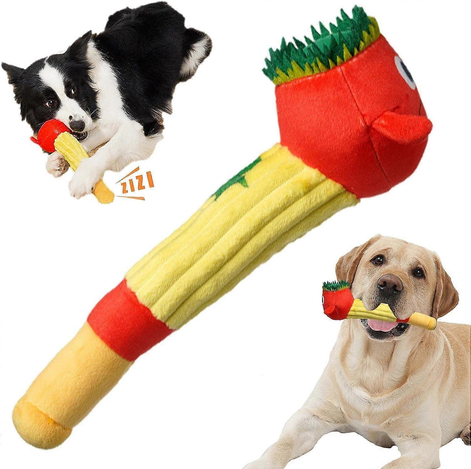[ Delicate Design ] Equipped with a sound device inside the plush toy, Puppy Chew Toy will make a squeak when pressed and uses a pipe design with red and yellow making it unique and attractive.