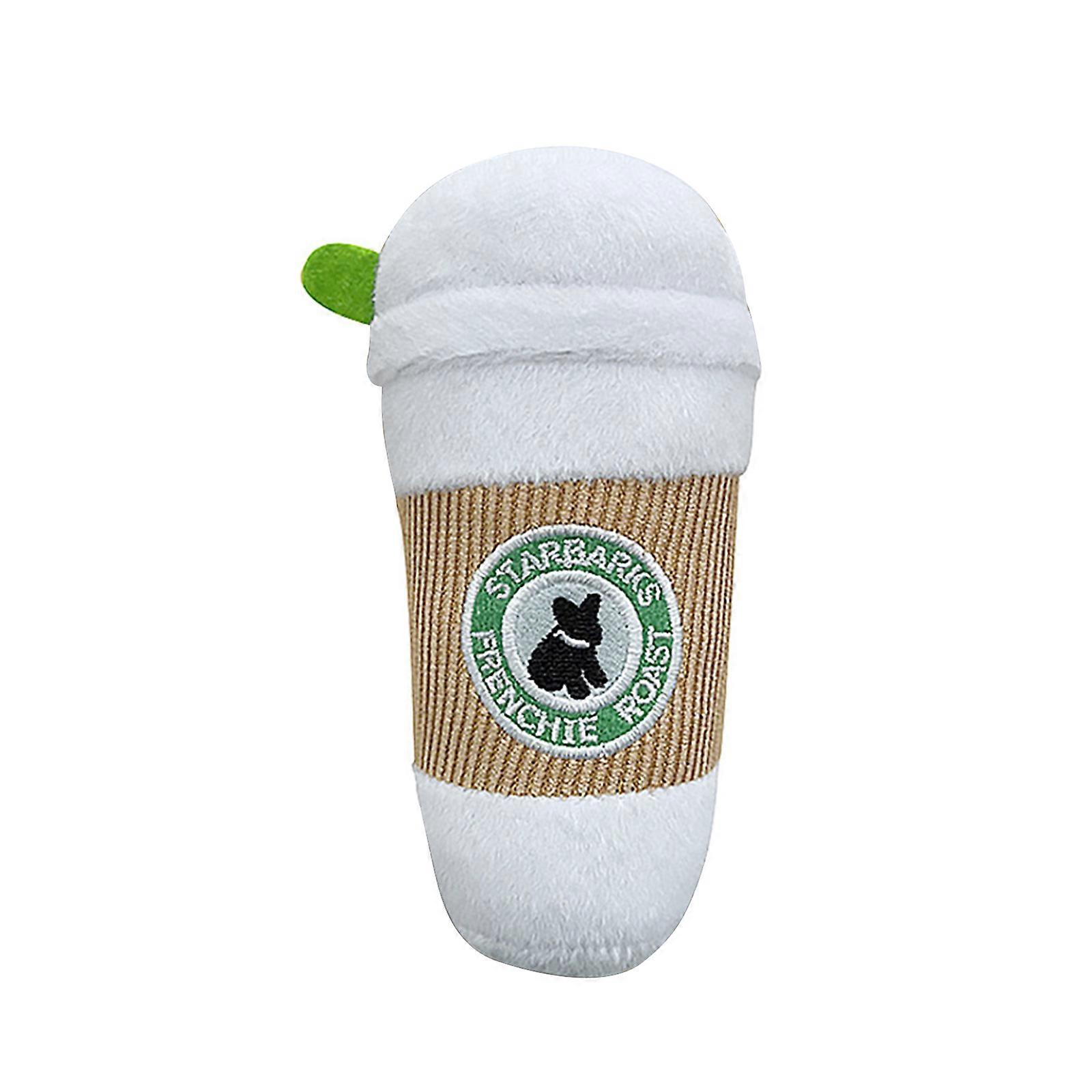 Dog Plush Toys Squeak Toys Funny Coffee Cup Stuffed Dog Chew Toys for Small Middle and Large Dogs Reducing Boring White