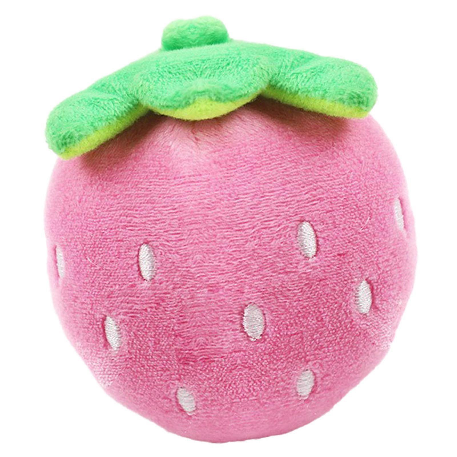 Dog Plush Toy Squeaky Cute Strawberry Shape Bite Resistant Stuffed Pet Plush Toy for Boredom and Anxiety Relief Pink