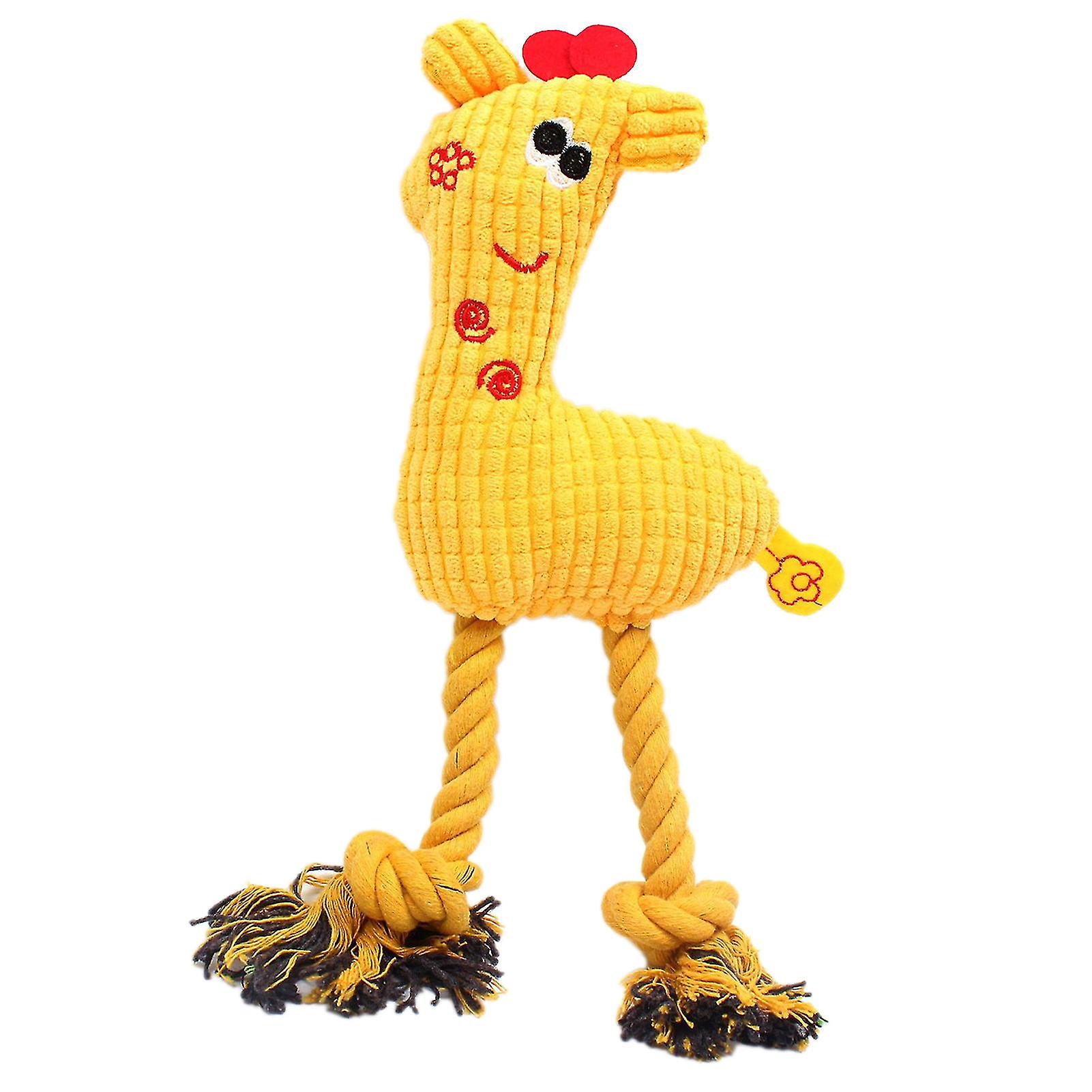 Dog Plush Toy Puppy Chewing Woven Rope Flannel Giraffe Shape Safe Cute for Pet Teeth Cleaning Yellow