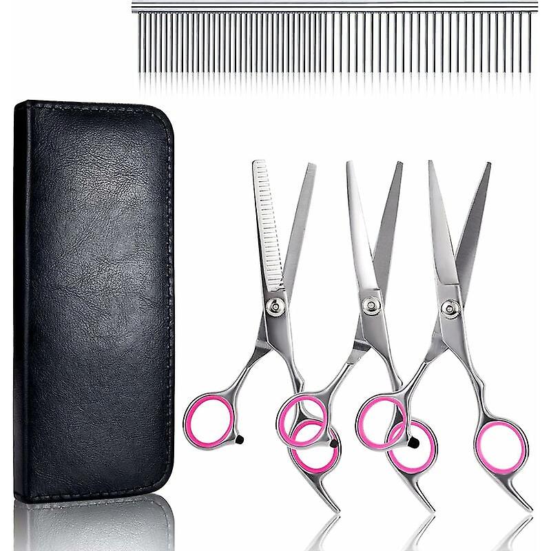Dog Grooming Scissors Set, 6 Inch Professional Pet Clipper Kit, Thinning Scissors, Straight and Curved for Dogs, Cats, Salon and DIY with Comb