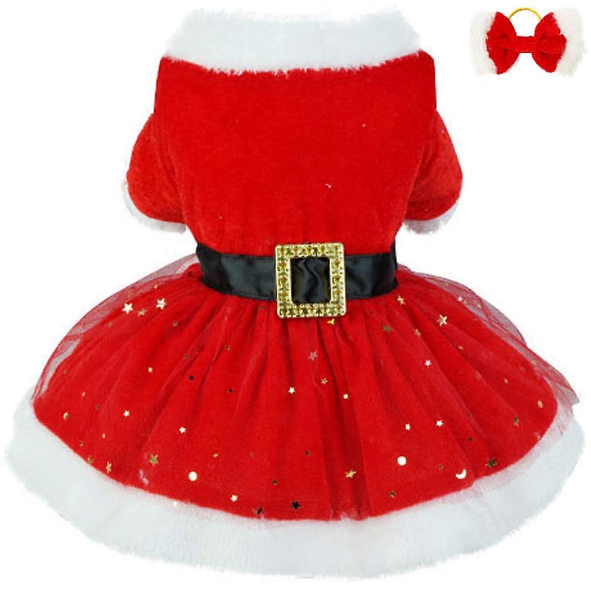 Dog Christmas Costume Dog Tulle Dress Witn Scrunchie, Santa Claus Pet Velvet Skirt