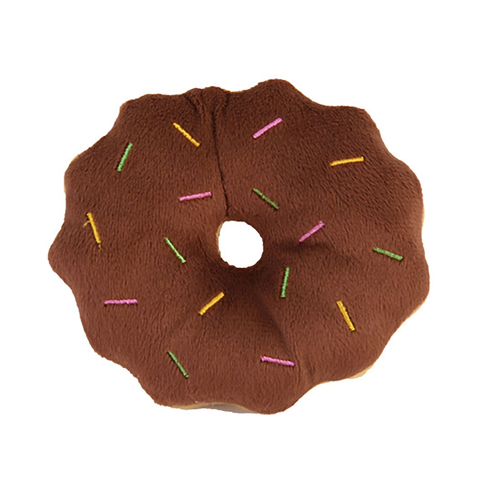 Dog Donut Toys Bite Resistant Teeth Grinding Relieve Boredom Cartoon Cute Squeaky Plush Dog Toy for Pet Supplies Brown