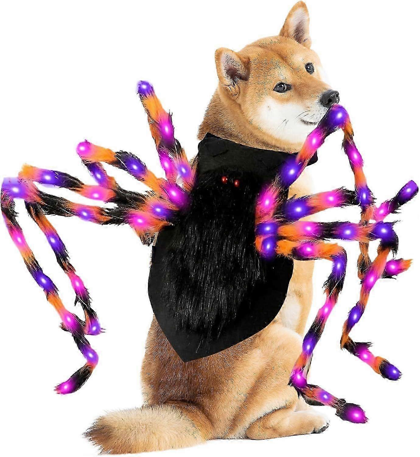 Dog Halloween Costumes, Furry Dog Spider Costume with 64 LED, Giant Spider Halloween Costume for Medium Large Dogs, Funny Costumes for Cat Pet Hallowe