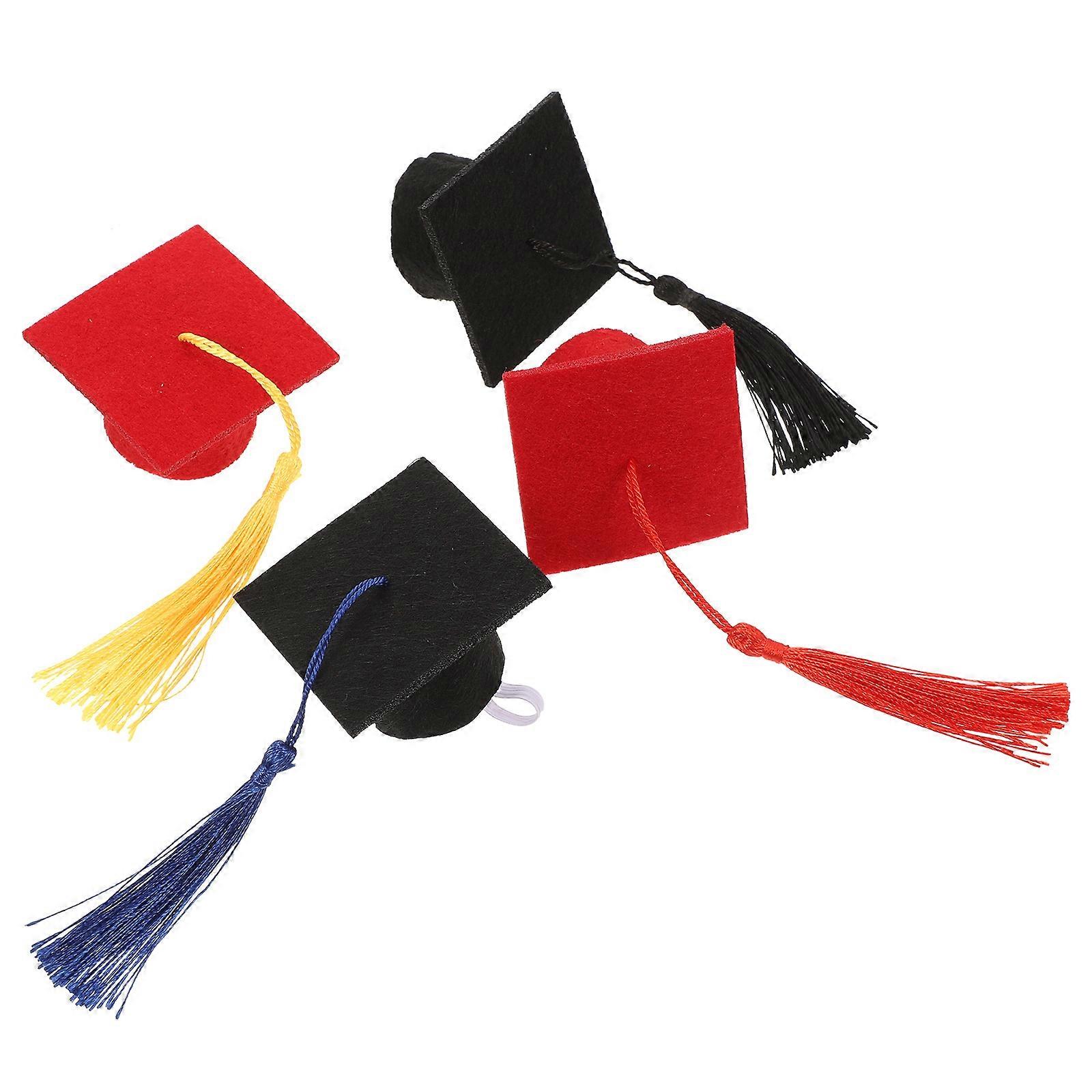 Dog Graduation Hats Pet Graduation Party Costume Accessories Red Cap with Red Tassel Photo Prop 4Pcs