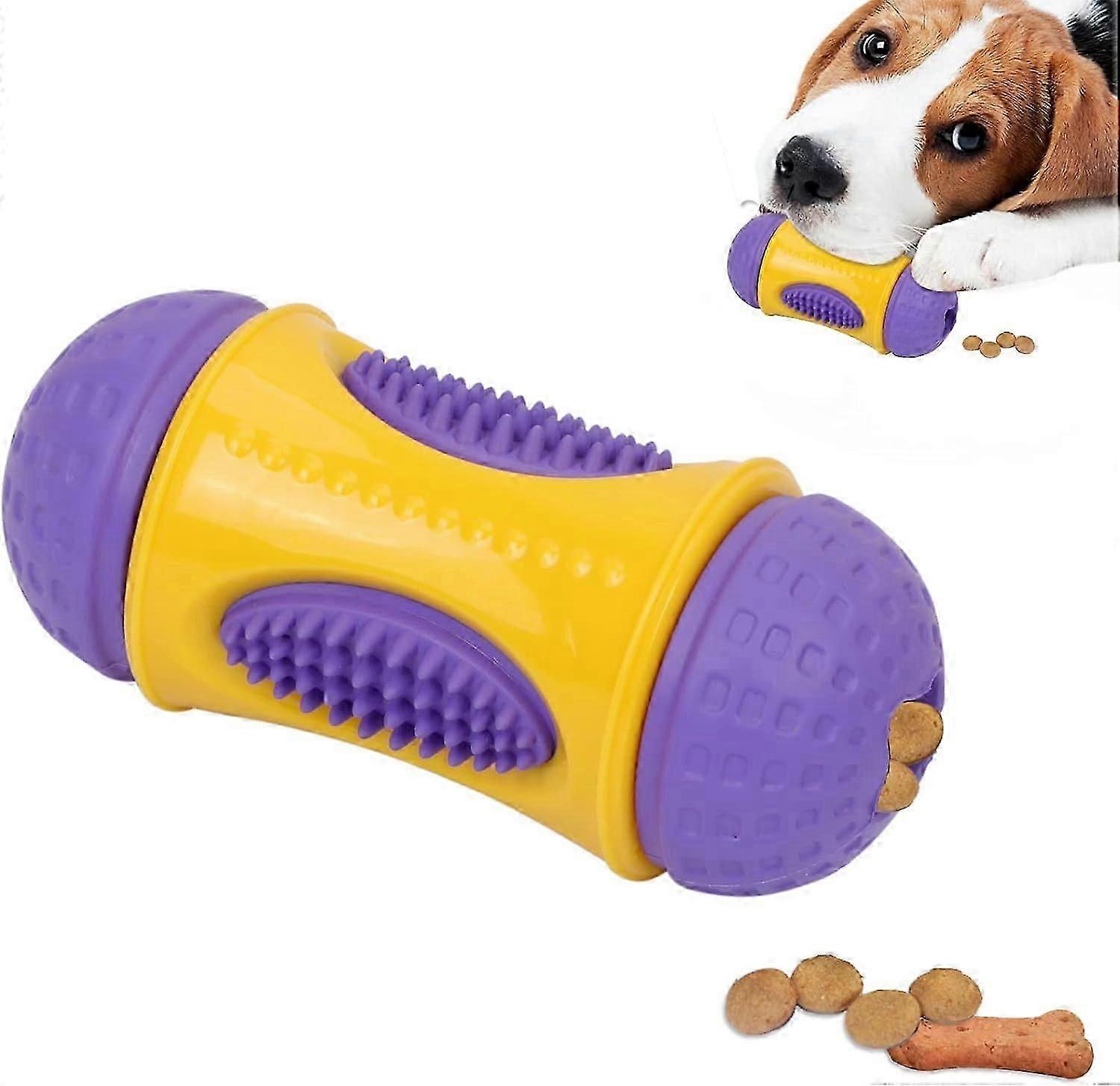 Dog Chew Toy, Puppy Teething Chew Toy with Leaky Holes for Pets, Natural Rubber Teeth Cleaning and Gum Massage for Small and Medium Dogs Purple