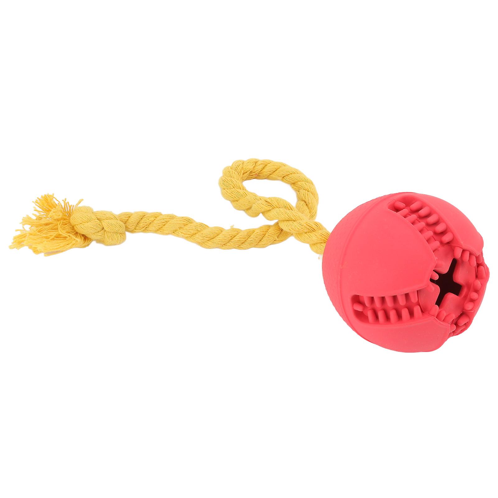Dog Leakage Food Ball Training Tapered Dog Puzzle Teething Toys with Cotton Rope for Dog Teeth Cleaning Chewing Playing Red